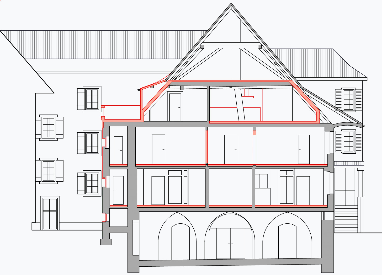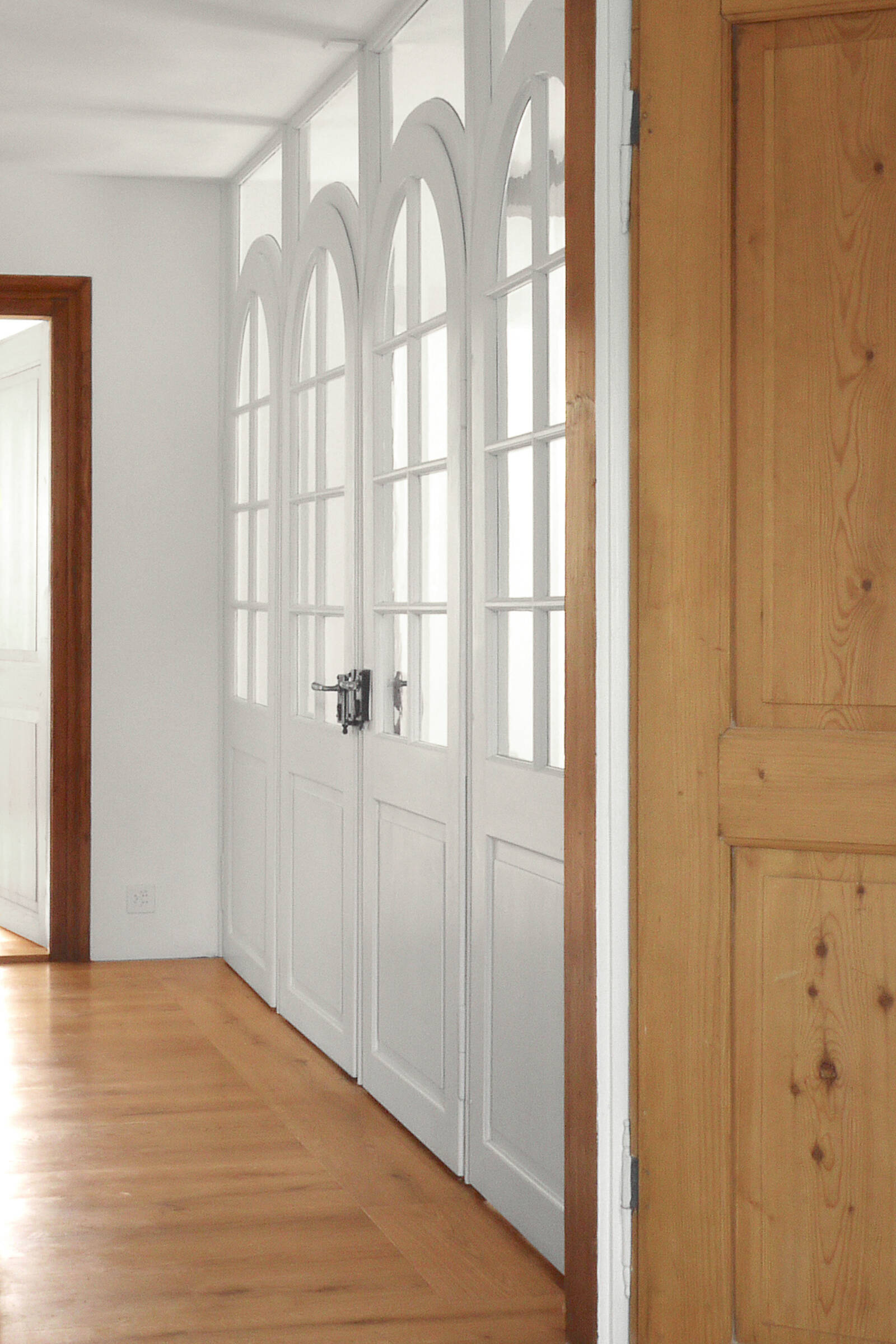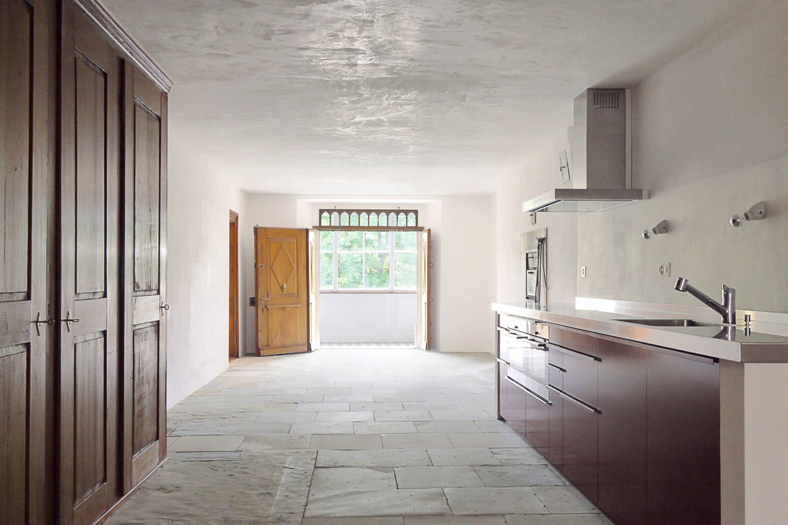 Das denkmalgeschützte Haupthaus des Gehrenhofs in Stäfa wurde 1691 erbaut. Es ist ein ausserordentlich schön erhaltener Zeuge sowohl der Seidenweberei als auch des Weinbaus am rechten Zürichseeufer. Entsprechend sorgfältig wurden die umfassende Sanierung und der Umbau zum Mehrfamilienhaus vorgenommen: Die historischen Wandmalereien in den Erkern wurden erneuert, die Fenster saniert und teilweise ersetzt. Die Fassade wurde mit Dämmputz versehen, Kellerdecke und Estrichboden gedämmt, der Gewölbekeller saniert. Die Steinböden im Erdgeschoss wurden aus-, der Unterbau neu aufgebaut, mit einer Bodenheizung ausgerüstet und danach Stein für Stein wieder verlegt. In jedes Geschoss wurde eine Wohnung eingebaut, wobei die originalen Parkettböden, die teilweise mit Intarsien versehen sind, neu verlegt werden mussten. Die Wände erhielten einen natürlichen Sumpfkalkputz, die Decken wurden saniert. Dank neuen Küchen und Nasszellen sowie einer zeitgemässen Haustechnik lässt es sich im Gehrenhof komfortabel wohnen. Der Umbau kann als gelungenes Beispiel gelten, wie historisch wertvoller Bestand mit modernen Einbauten ergänzt und damit zu einem Lebensraum für die Zukunft werden kann.